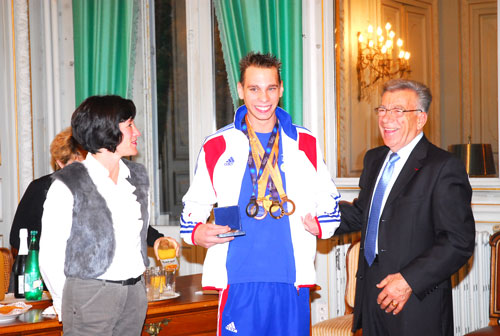 J'ai participé à la remise de la médaille du Département,à Geoffrey Wersy, triathlète handisport poitevin, en présence de Maurice Ramblière, Vice-président du Conseil général en charge des Sports, Guy Jutant et Dany Couneau, Adjoints au Maire de Mignaloux-Beauvoir et Odile Chauvet, Présidente du Stade Poitevin Omnisports.