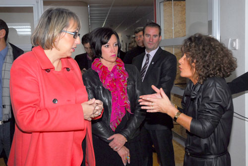 De g à d : Marie-Anne Montchamp, Secrétaire d'Etat auprès du Ministre des Solidarités et de la Cohésion Sociale, Valérie Champion et Madame Baudiffier, Directrice de la Maison d'Accueil Spécialisée lors de l'inauguration de "TERRA NOVA" à Biard