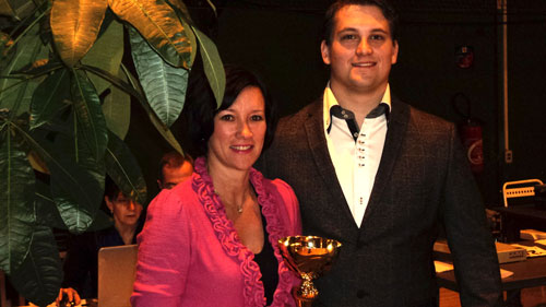 Valérie Champion lors de la remise du trophée en compagnie d'Axel Delphin, Président de l'Association de Danse Sportive ADS86