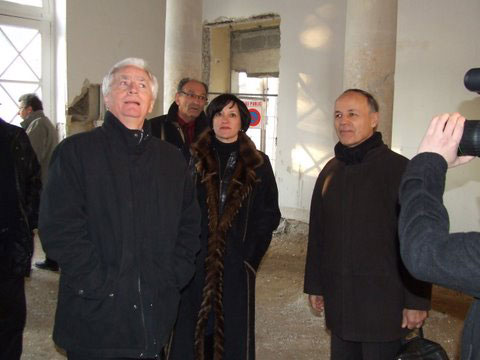 Lancement des travaux de réhabilitation de l'ancien théâtre de Châtellerault en présence de Jean-Pierre Abelin, Député-maire de CHâtellerault, Valérie Champion et Stéphane Milet, architecte du projet.