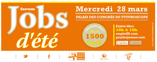 En compagnie de Claude Bertaud, Président du Conseil général, j'ai participé à l'inauguration de l'édition 2012 du « Forum Jobs d'Eté » qui s'est déroulée au Palis des Congrès du Futuroscope.